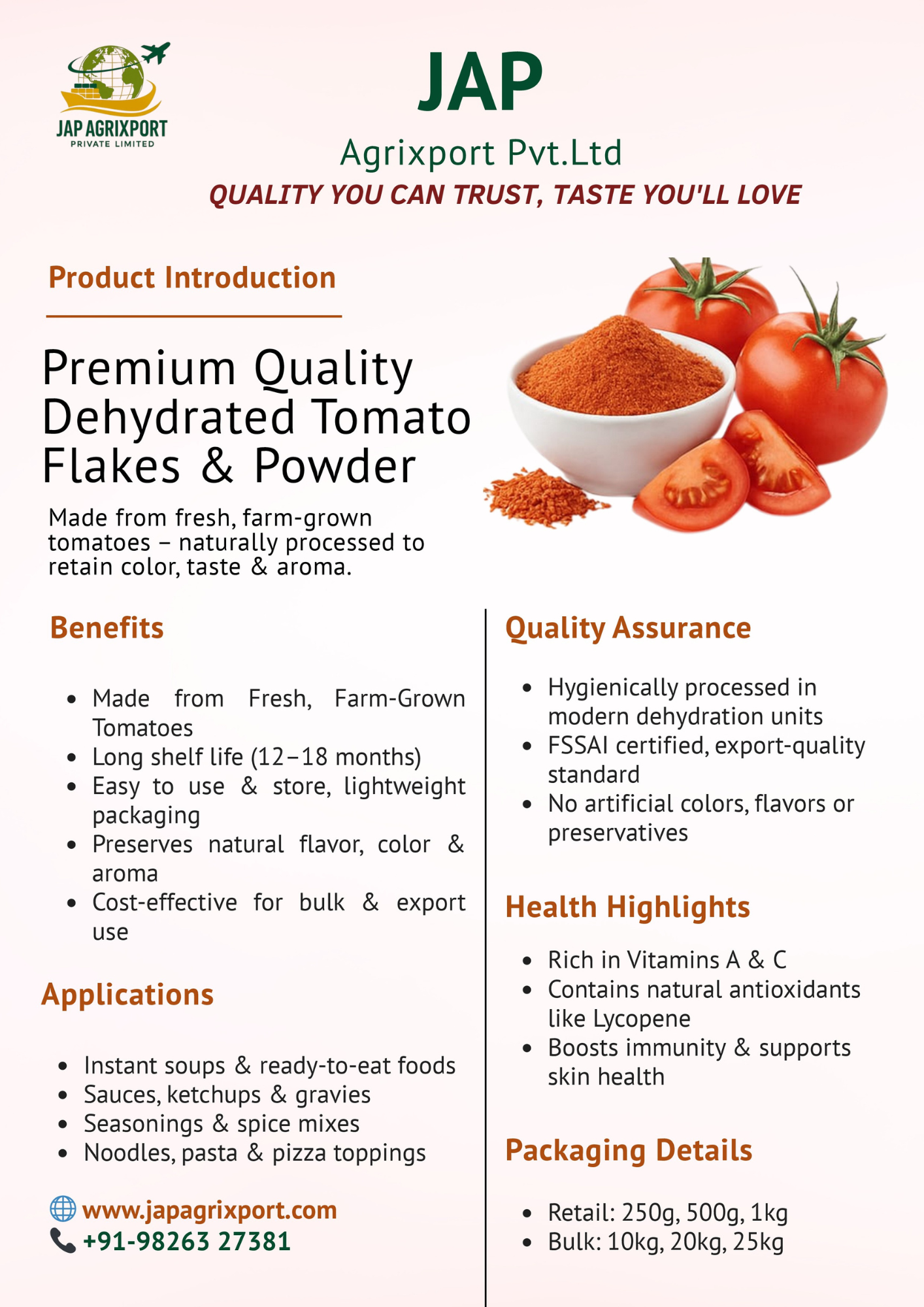 Premium Quality Dehydrated Tomato Flakes & Powder