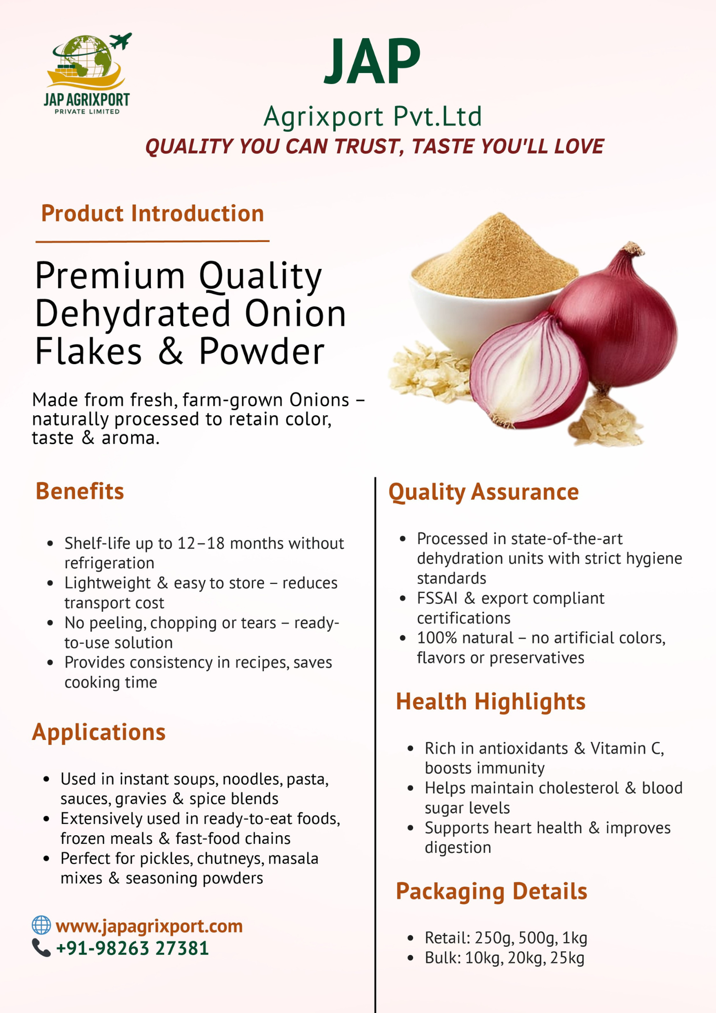 Made from fresh, farm-grown Onions – naturally processed to retain color, taste & aroma.