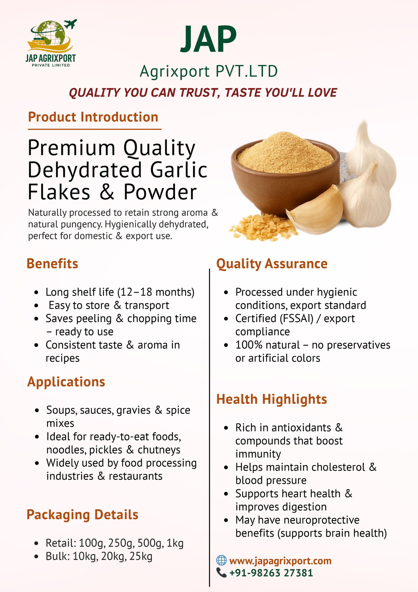 Premium Quality Dehydrated Garlic Flakes & Powder